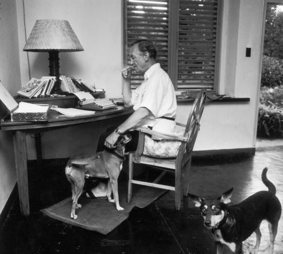 En las dos primeras tomas, de espacios diferentes, Ian Fleming escribe incrustado en una esquina. Quizás porque los espías de sus obras se veían a menudo en esa tesitura de callejón sin salida. La esquina también puede despertar en el escritor un sentimiento de refugio.